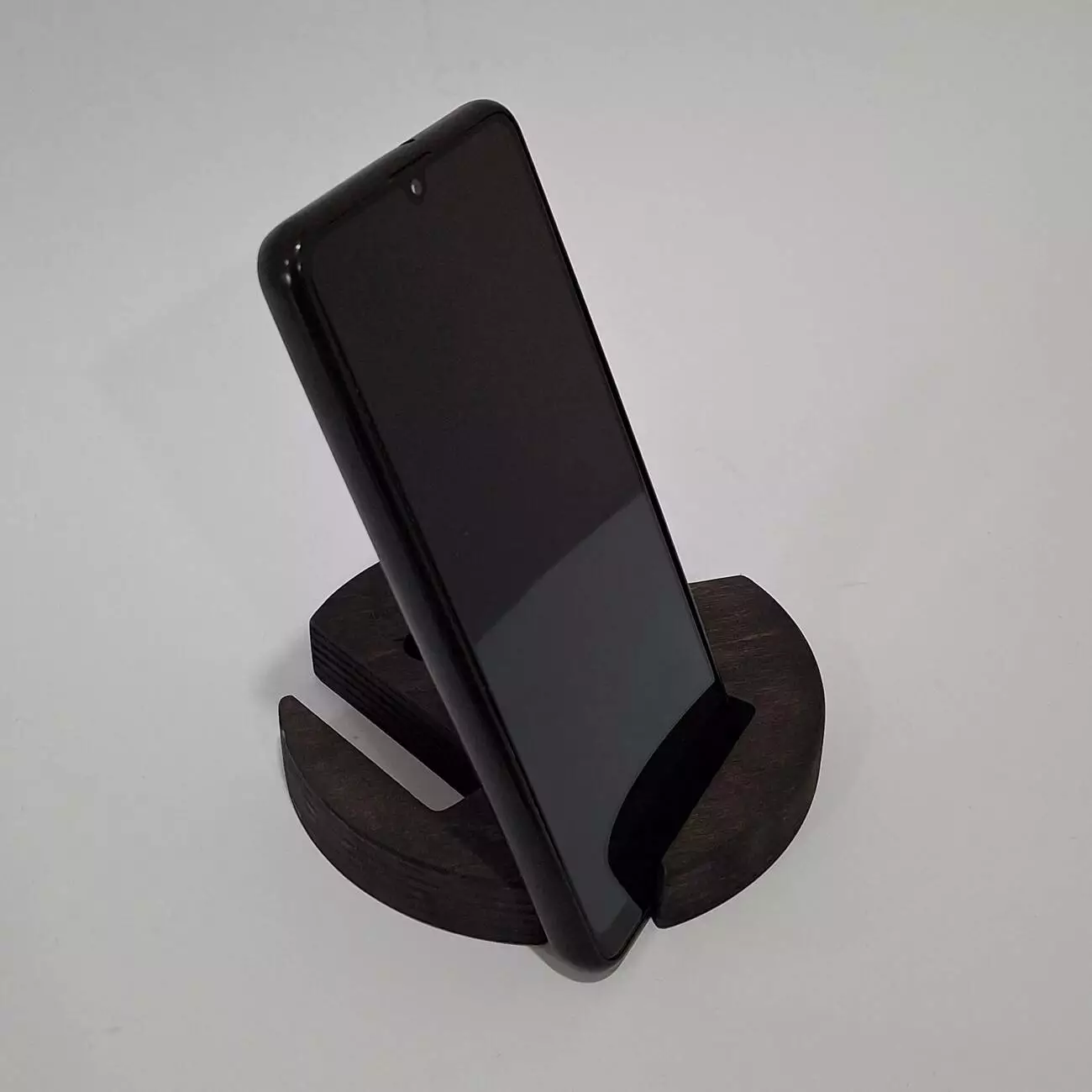 Тримач виконаний з натуральної вологостійкої фанери, товщиною 18мм. Має ергономічну форму, яка дозволить розташувати Ваш гаджет в будь-якому зручному положенні. Має декілька фіксуючих положень, дозволяє розміщувати телефон як горизонтально так і вертикально.