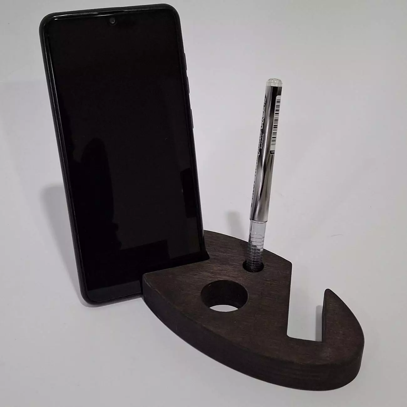 Тримач виконаний з натуральної вологостійкої фанери, товщиною 18мм. Має ергономічну форму, яка дозволить розташувати Ваш гаджет в будь-якому зручному положенні. Має декілька фіксуючих положень, дозволяє розміщувати телефон як горизонтально так і вертикально.