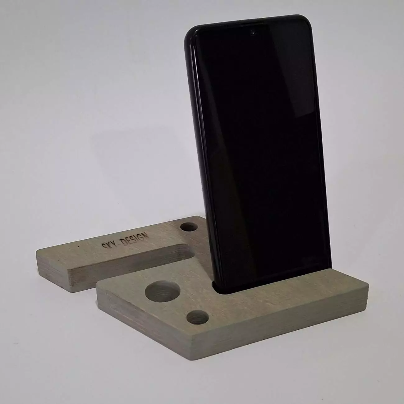 Тримач виконаний з натуральної вологостійкої фанери, товщиною 18мм. Має ергономічну форму, яка дозволить розташувати Ваш гаджет в будь-якому зручному положенні. Має декілька фіксуючих положень, дозволяє розміщувати телефон як горизонтально так і вертикально.