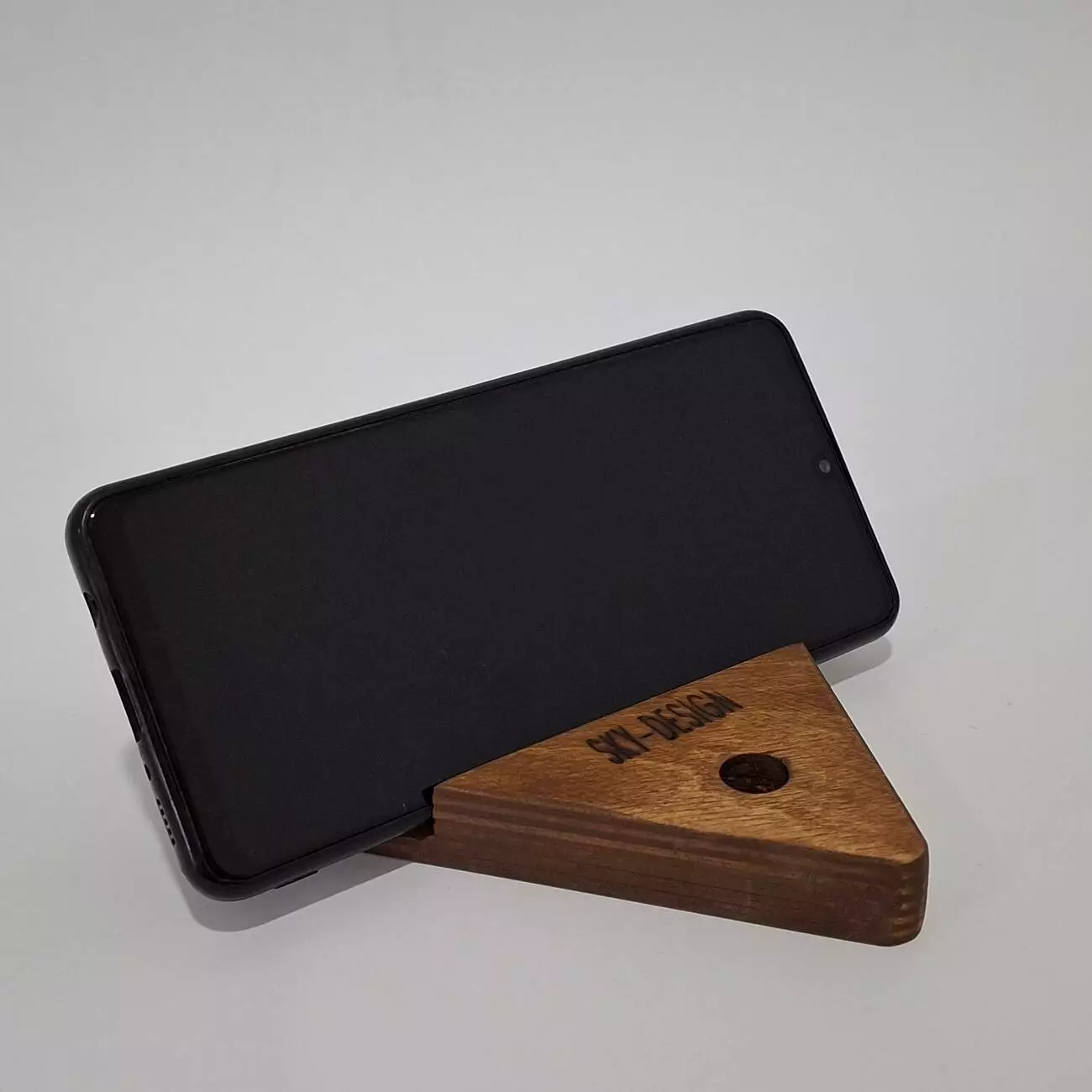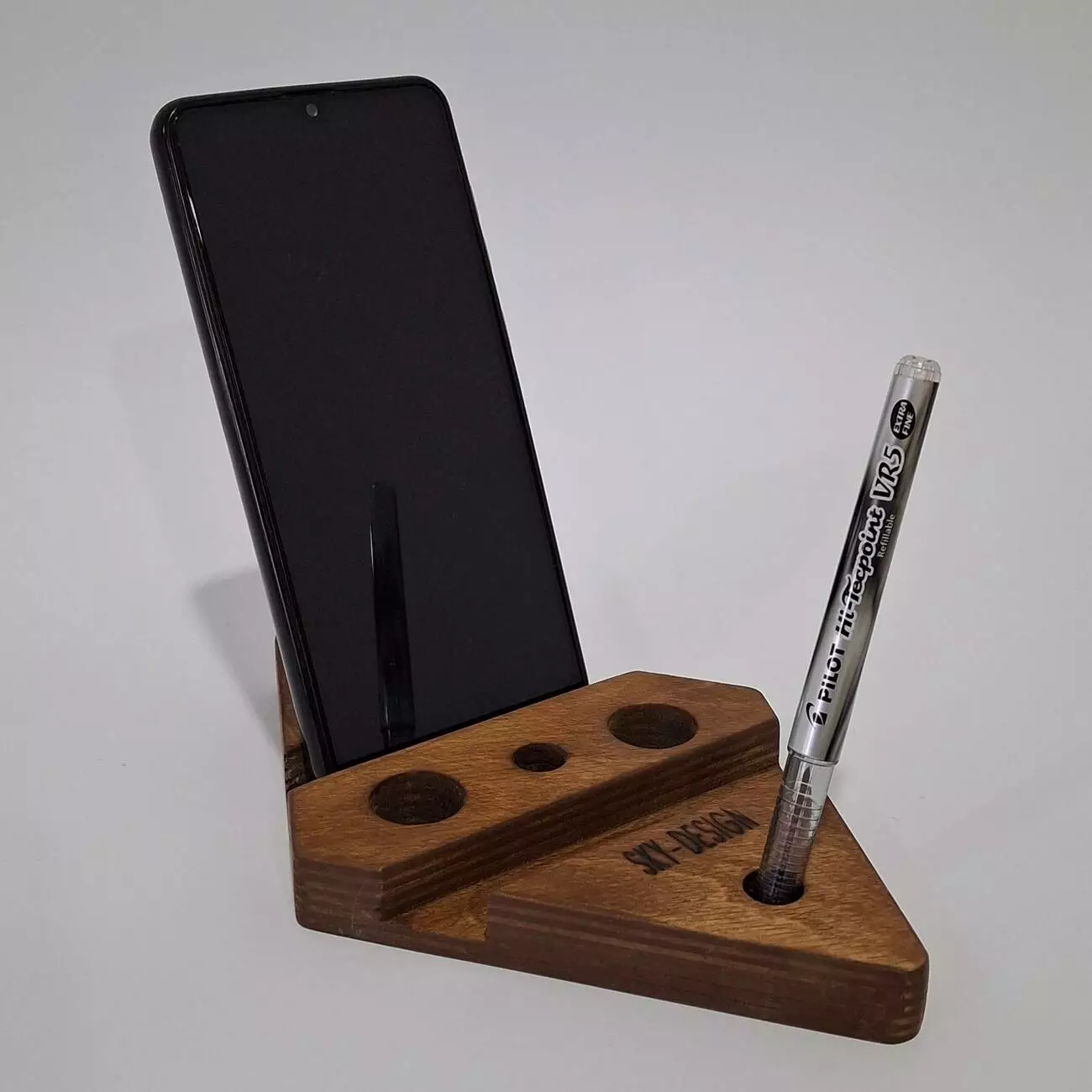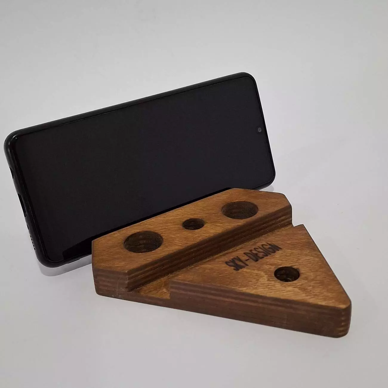 Тримач виконаний з натуральної вологостійкої фанери, товщиною 18мм. Має ергономічну форму, яка дозволить розташувати Ваш гаджет в будь-якому зручному положенні. Має декілька фіксуючих положень, дозволяє розміщувати телефон як горизонтально так і вертикально.
