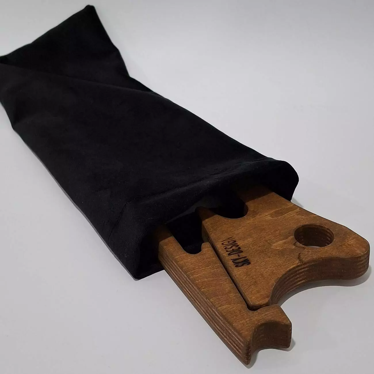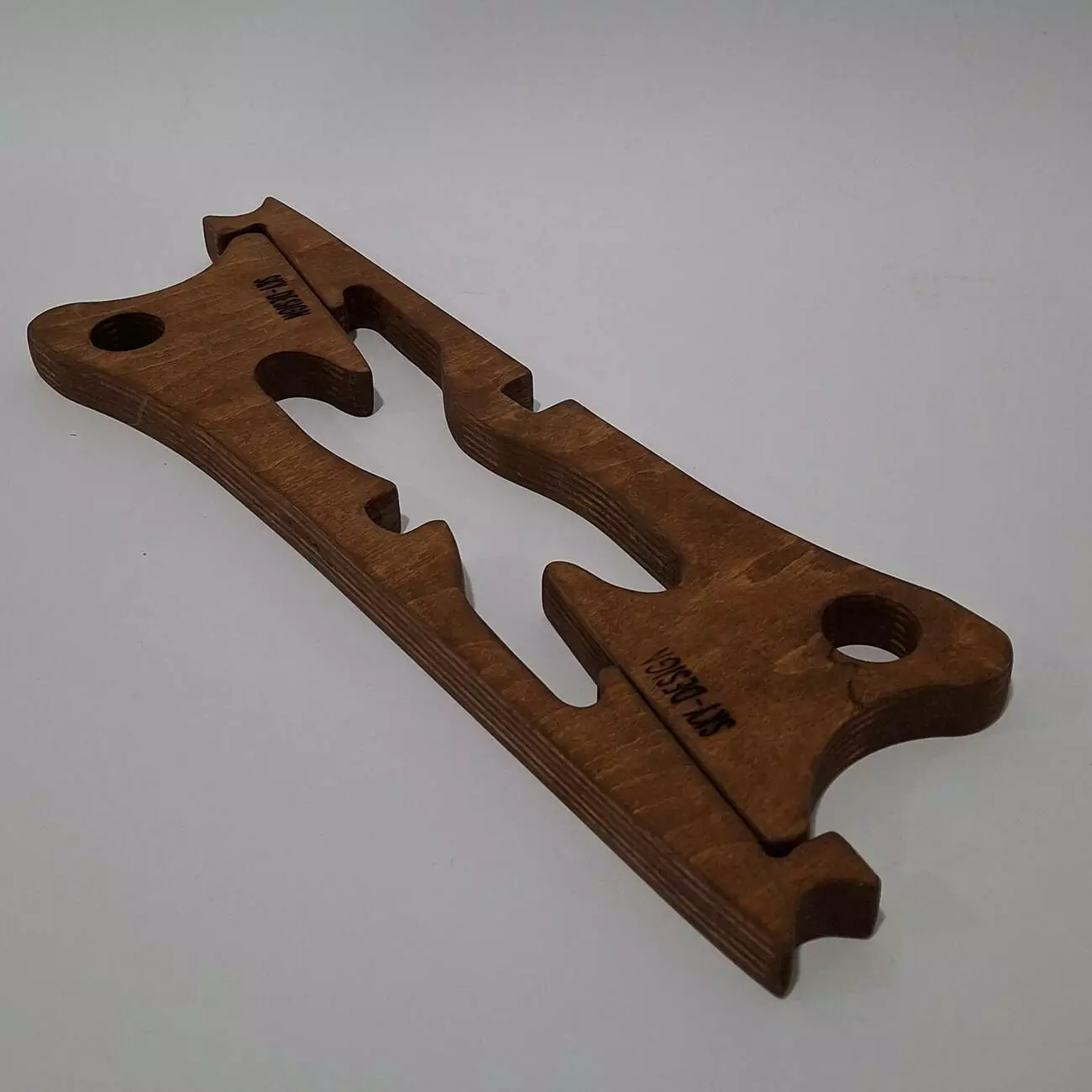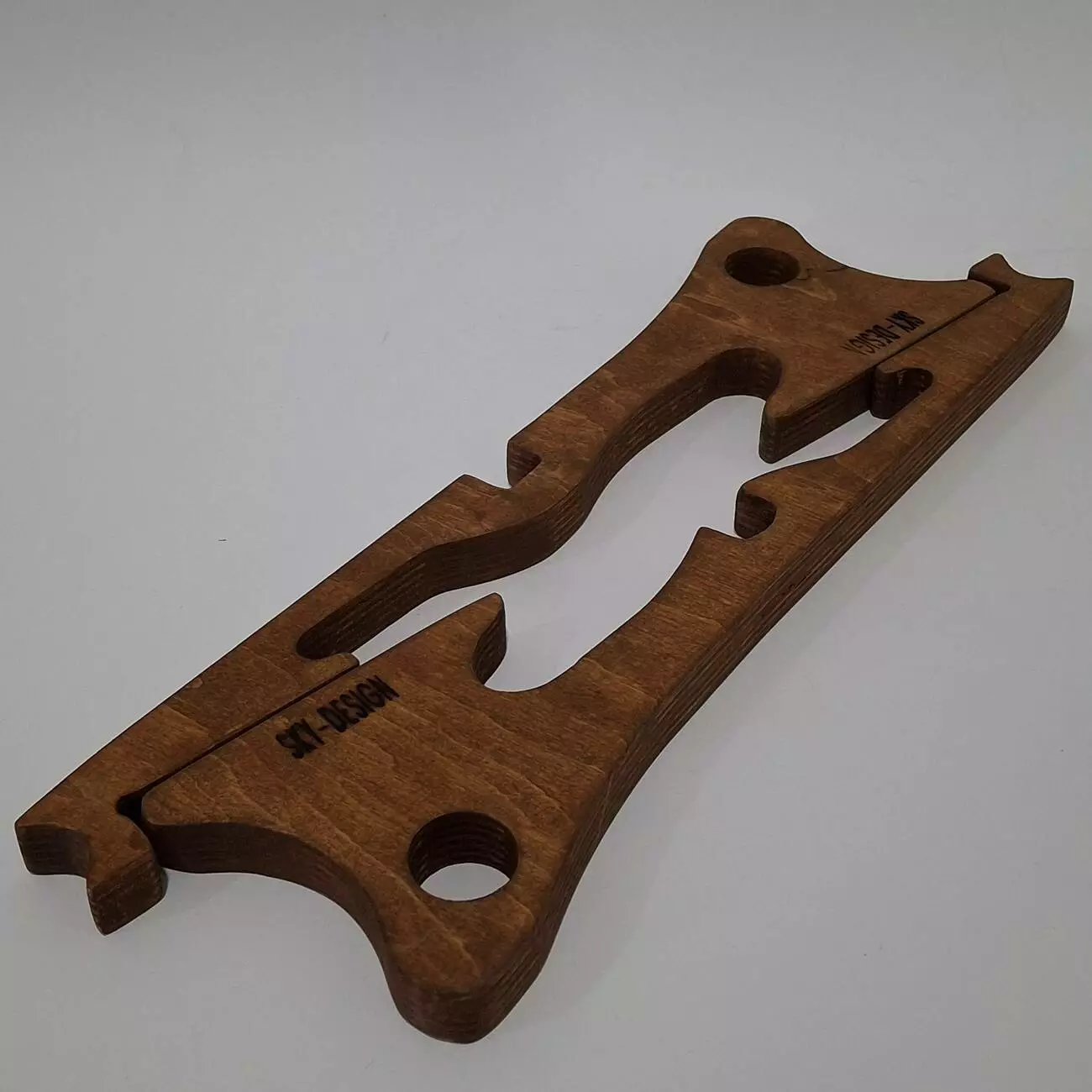 Тримач виконаний з натуральної вологостійкої фанери, товщиною 18мм. Має ергономічну форму, яка дозволить розташувати Ваш гаджет в будь-якому зручному положенні. Тримач потрібен для зручності роботи, також створює пространство між ноутбуком на поверхнею для кращого охолодження.