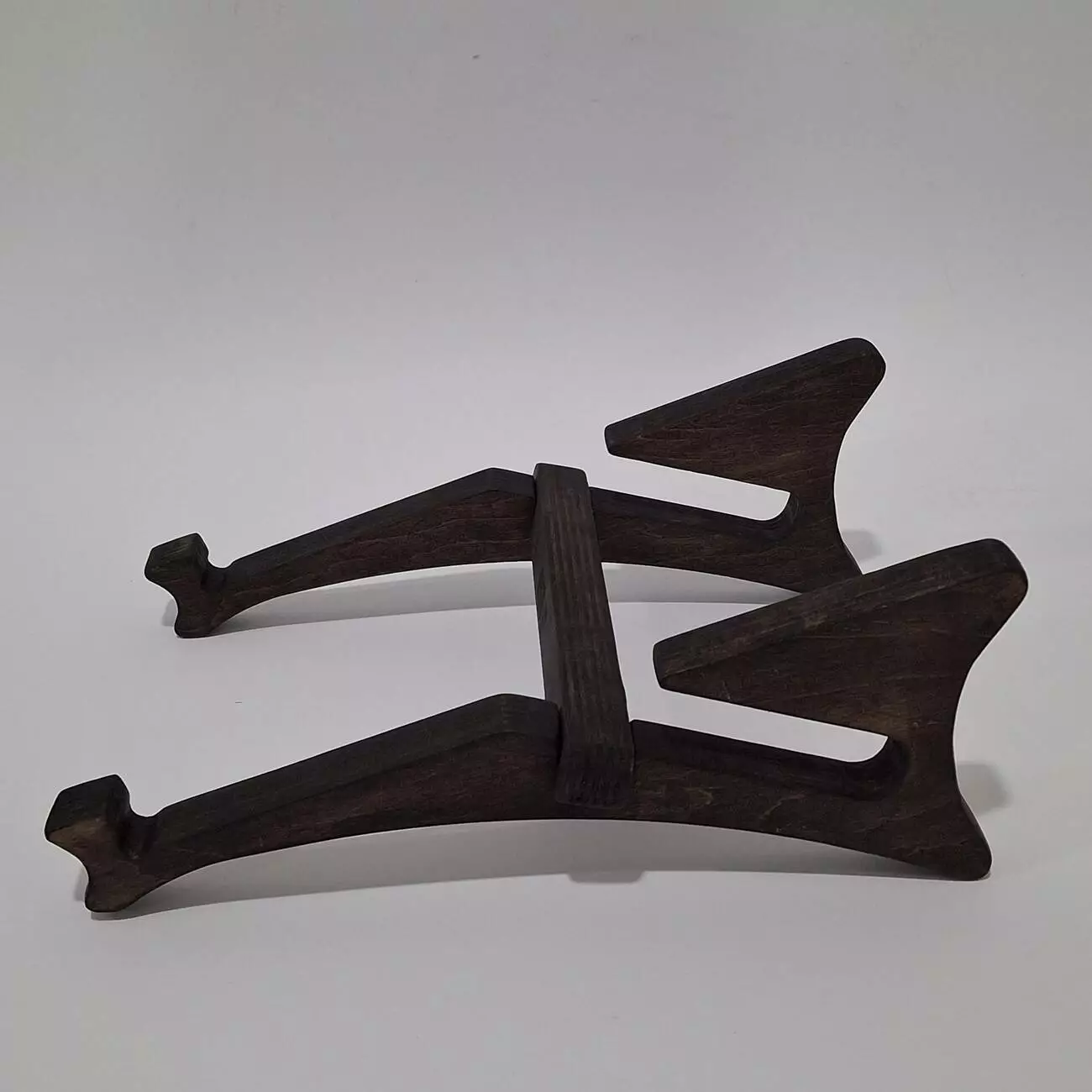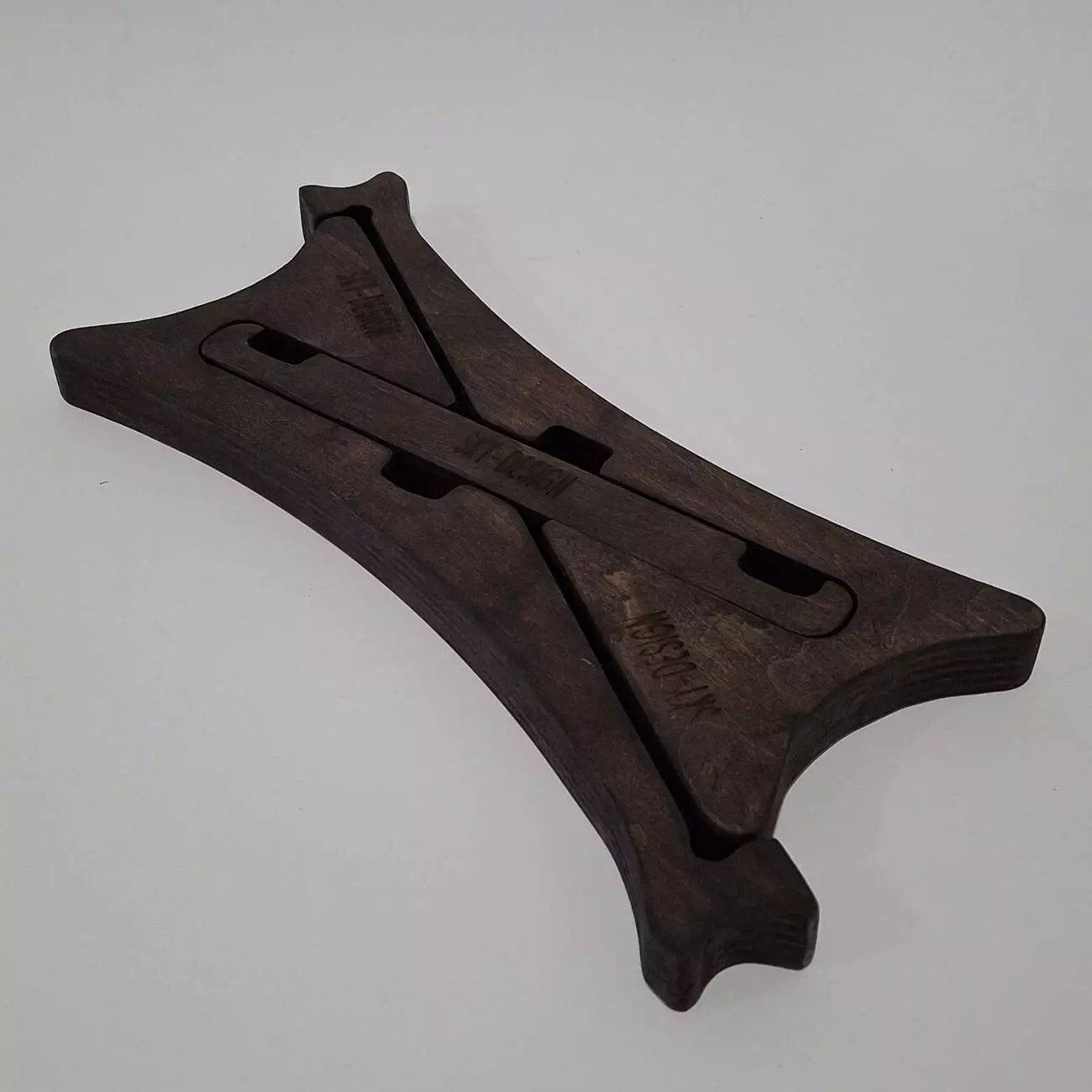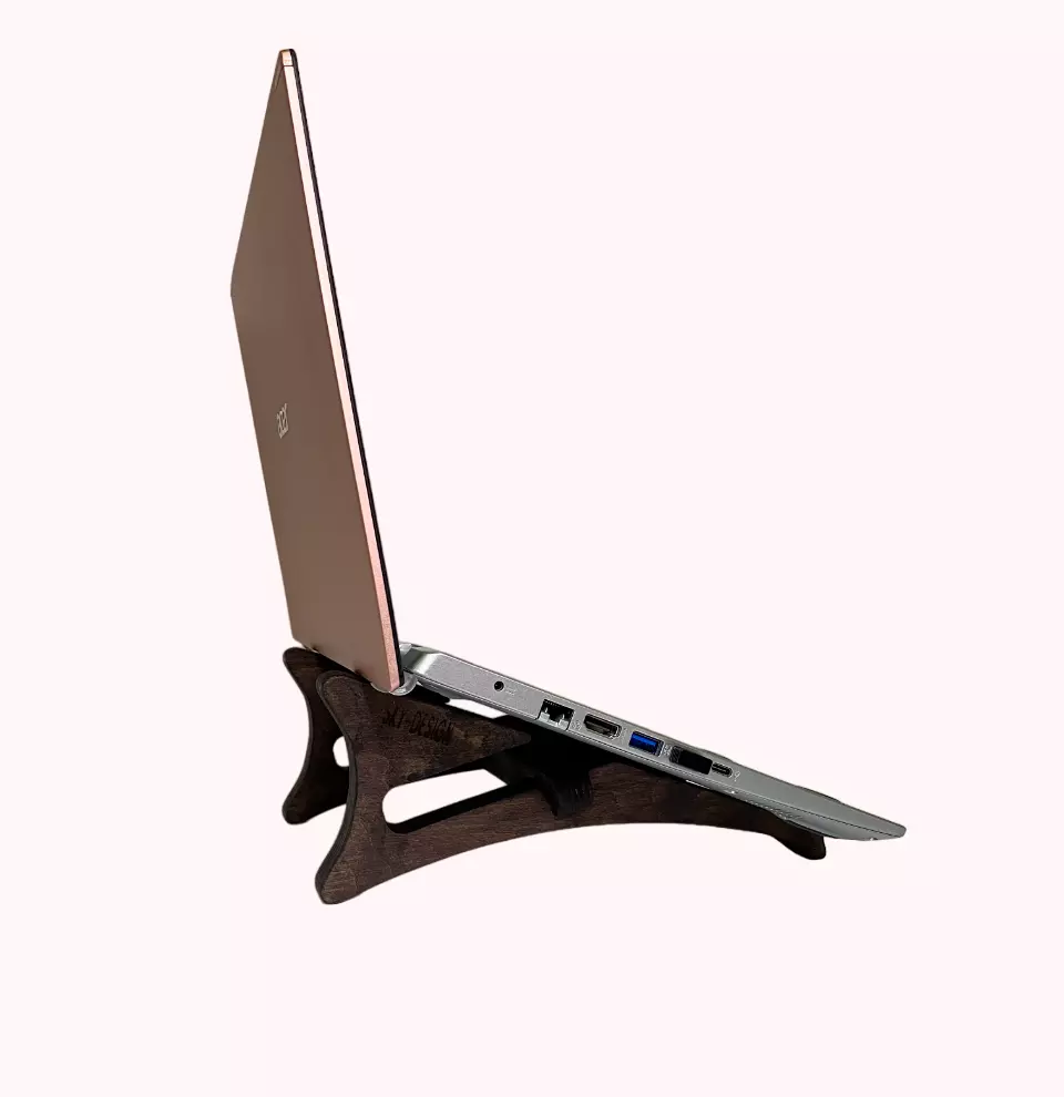 Тримач виконаний з натуральної вологостійкої фанери, товщиною 18мм. Має ергономічну форму, яка дозволить розташувати Ваш гаджет в будь-якому зручному положенні. Тримач потрібен для зручності роботи, також створює пространство між ноутбуком на поверхнею для кращого охолодження.
