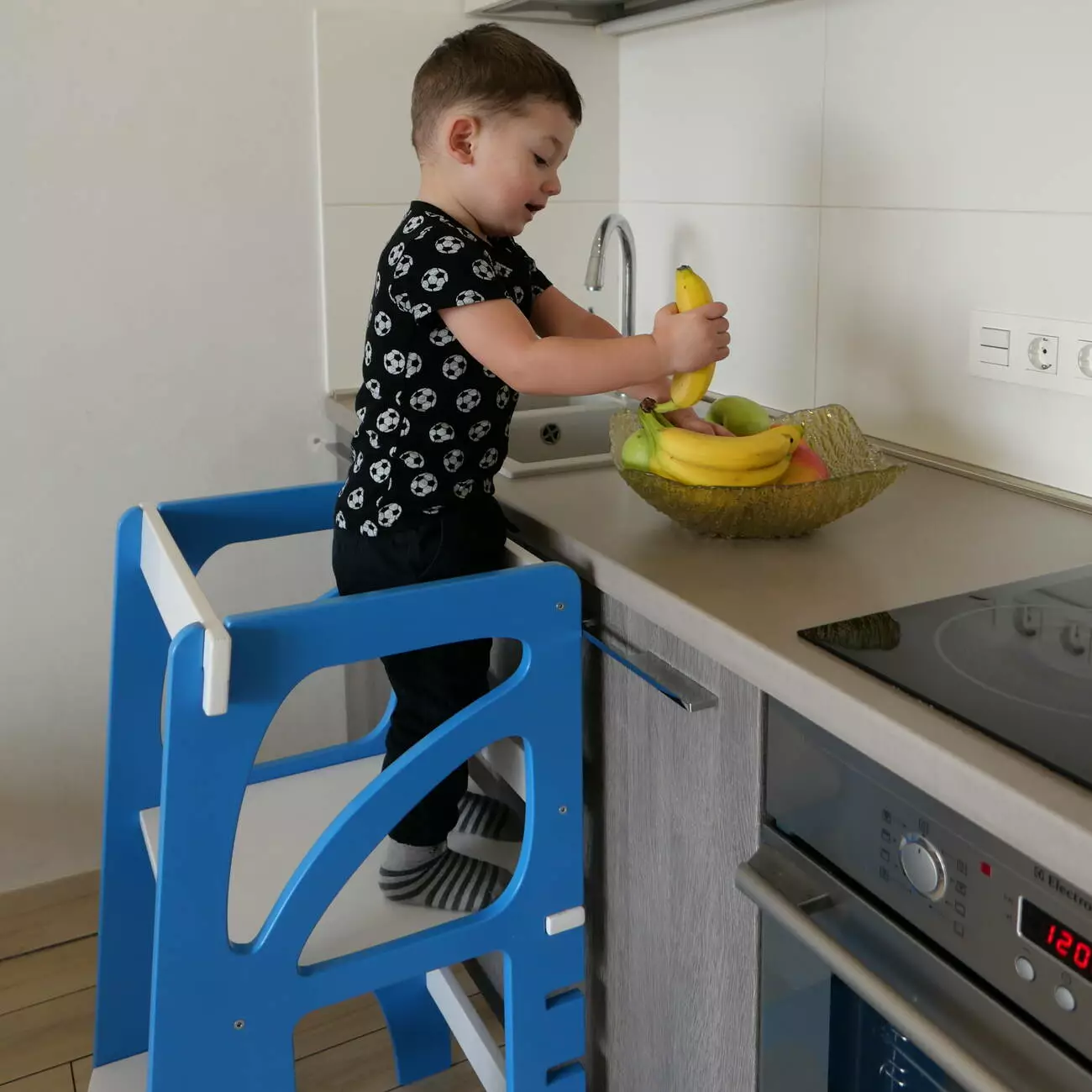 Башта маленького помічника допоможе безпечно організувати вашу взаємодію з дитиною. Ви не турбуватиметеся про те, що дитина впаде, оступиться і т.д. Процеси приготування їжі, миття посуду/овочів/фруктів, заняття своїми справами у мами. Стілець Монтессорі знайде своє застосування не тільки на кухні, а й у ванній кімнаті – дитина зможе самостійно вмиватися, мити руки, чистити зуби. Башта помічника потрібна, що зробить життя батьків легшим, а розвиток дитини більш якісним та цікавим, вчить самостійності та впевненості у своїх силах.